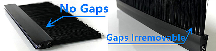 Im Vergleich zu einer flexiblen Profilstreifenbürste mit Clipverschluss liegt der größte Vorteil dieser starren Ausführung in ihrer deutlich höheren Borstendichte. Flexible Bürsten mit Clipverschluss werden üblicherweise im Klammerverfahren hergestellt, wodurch kleine Lücken zwischen den Borstenlöchern an der Basis entstehen. Diese Lücken erschweren eine vollständig abgedichtete Kabeleinführung.