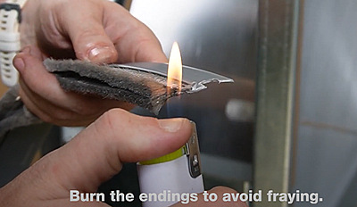 Um die Lebensdauer des Produkts zu verlängern und das Auflösen des Garns zu verhindern, empfehlen wir beide Enden des Garns mit einem Feuerzeug leicht anbrennen zu Beginn und am Ende der Installation. Dies trägt zur Verschmelzung der Fasern bei und hält die Bürstenstruktur über die Zeit intakt.