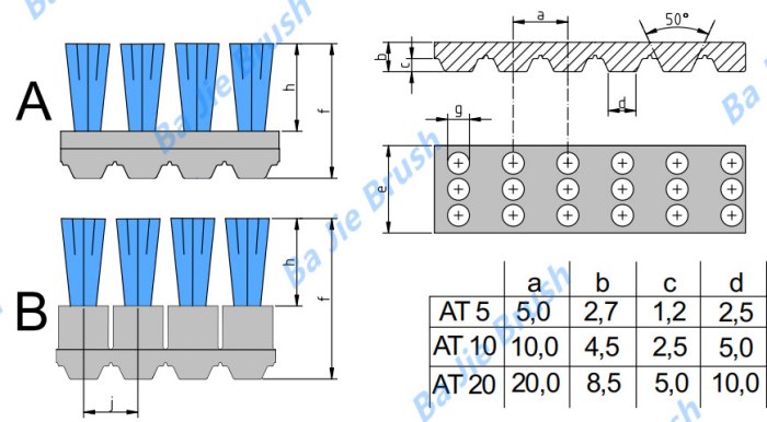 Unser Zahnriemenbürste besteht aus PU-Zahnriemen und Borsten und eignet sich für Anwendungen, die eine vertikale und horizontale Reinigung erfordern. Die Bürste ist in sechs Standardriemenprofilen erhältlich:
