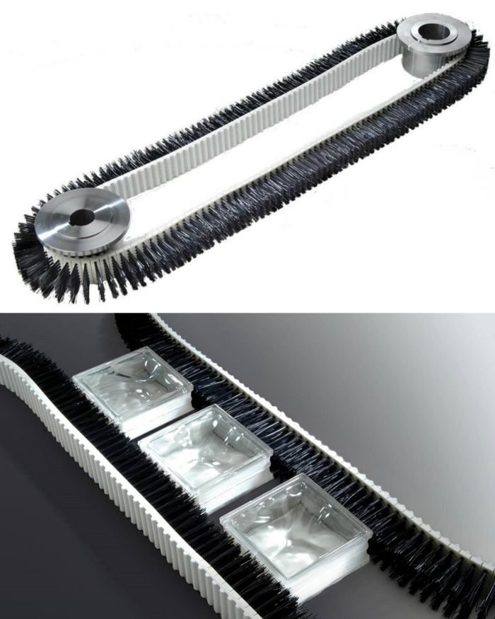 Unsere Zahnriemenbürste mit PU-Stollen kann für viele Anwendungen auf Standardzahnscheiben installiert und gedreht werden.